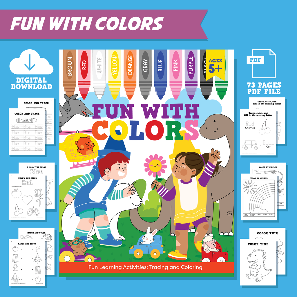 Unleash creativity with the 'Fun with Colors' activity book. It's packed with activities to help kids master colors through engaging tracing and coloring exercises.